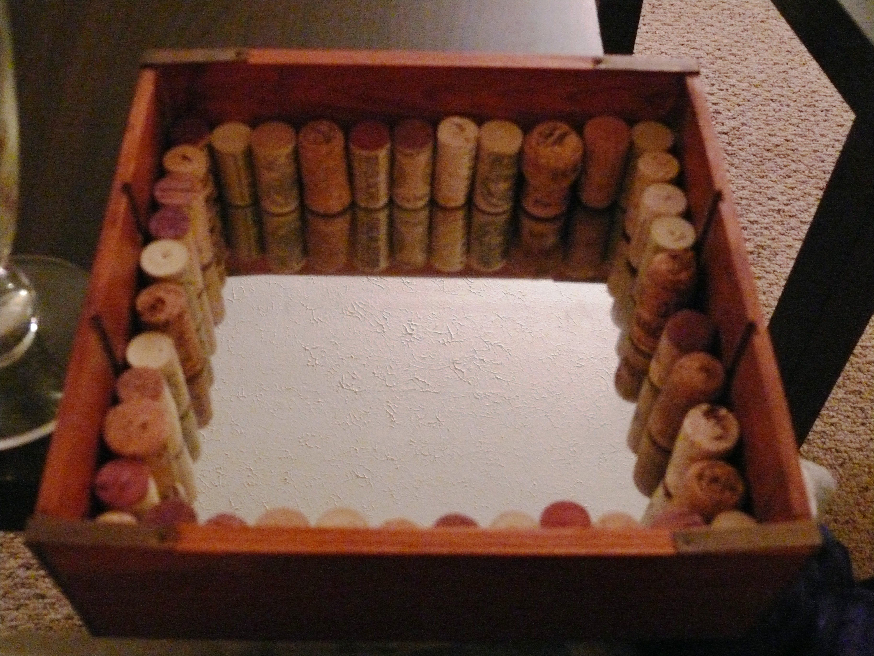 I started to play around with the corks, lining them around the edges until they all fit smoothly around each side. That actually took quite a bit of maneuvering and switching of the corks, but I cam up with this: