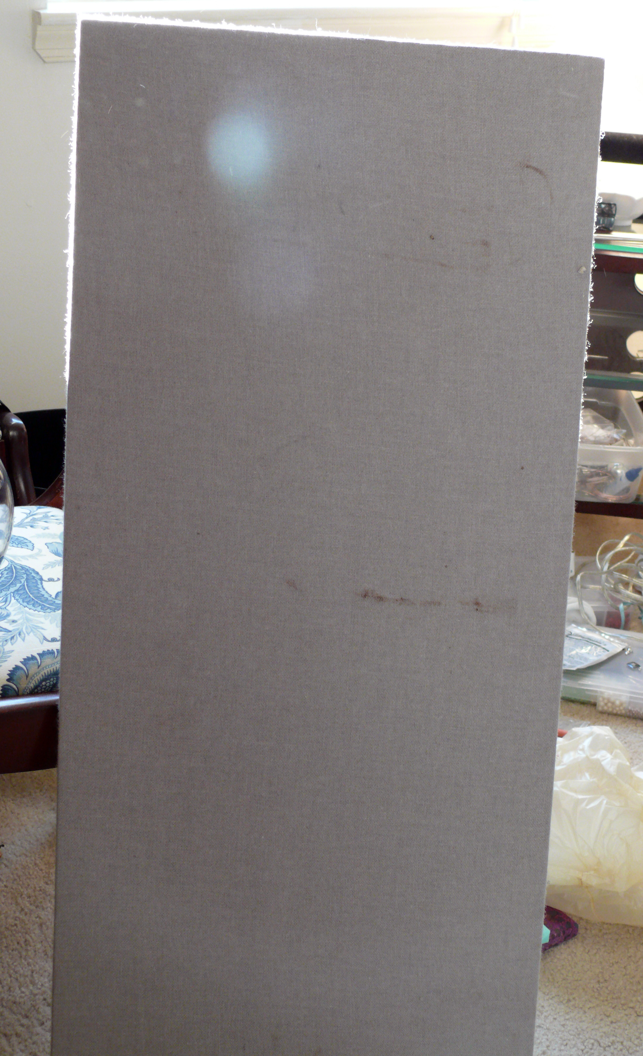 Yes, that’s right… it is one nasty, old bulletin board. It looks like it was part of a cubicle, which is odd because we don’t have cubicles. Either way, it’s rather gross looking and is just screaming for a new look.