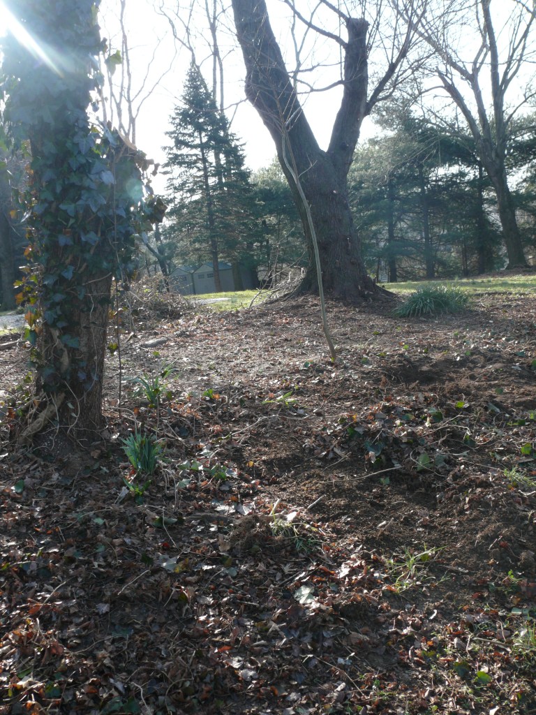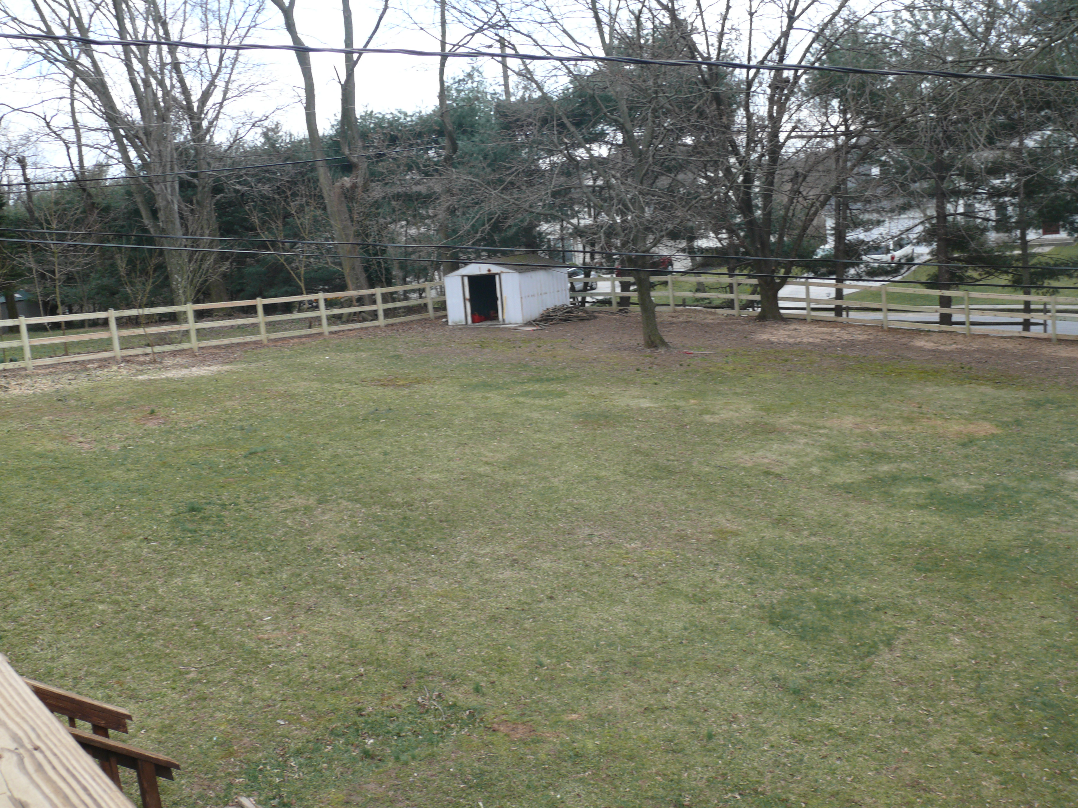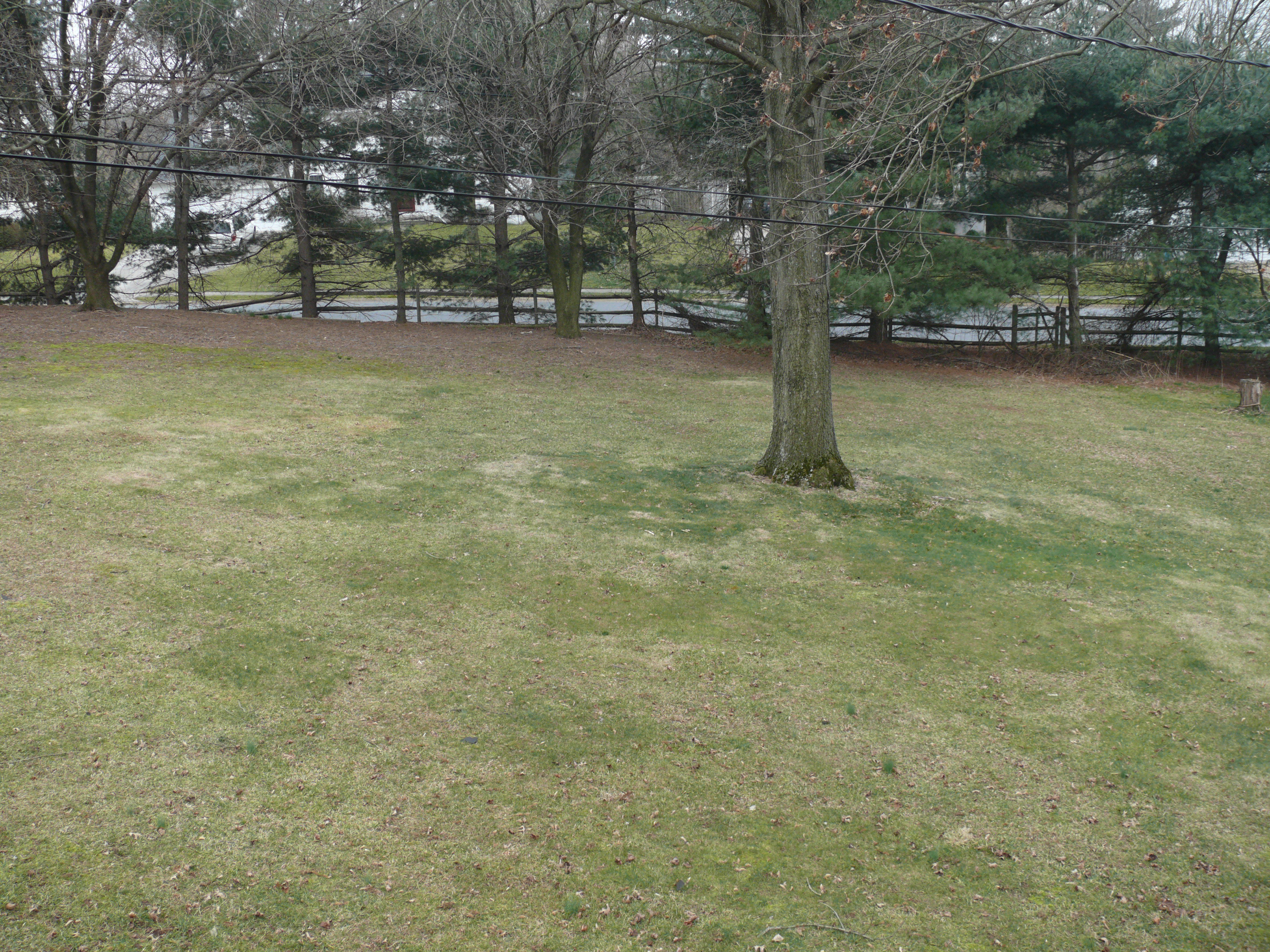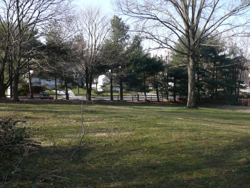 Here’s the yard before we cleared out the lower limbs in the back tree line.