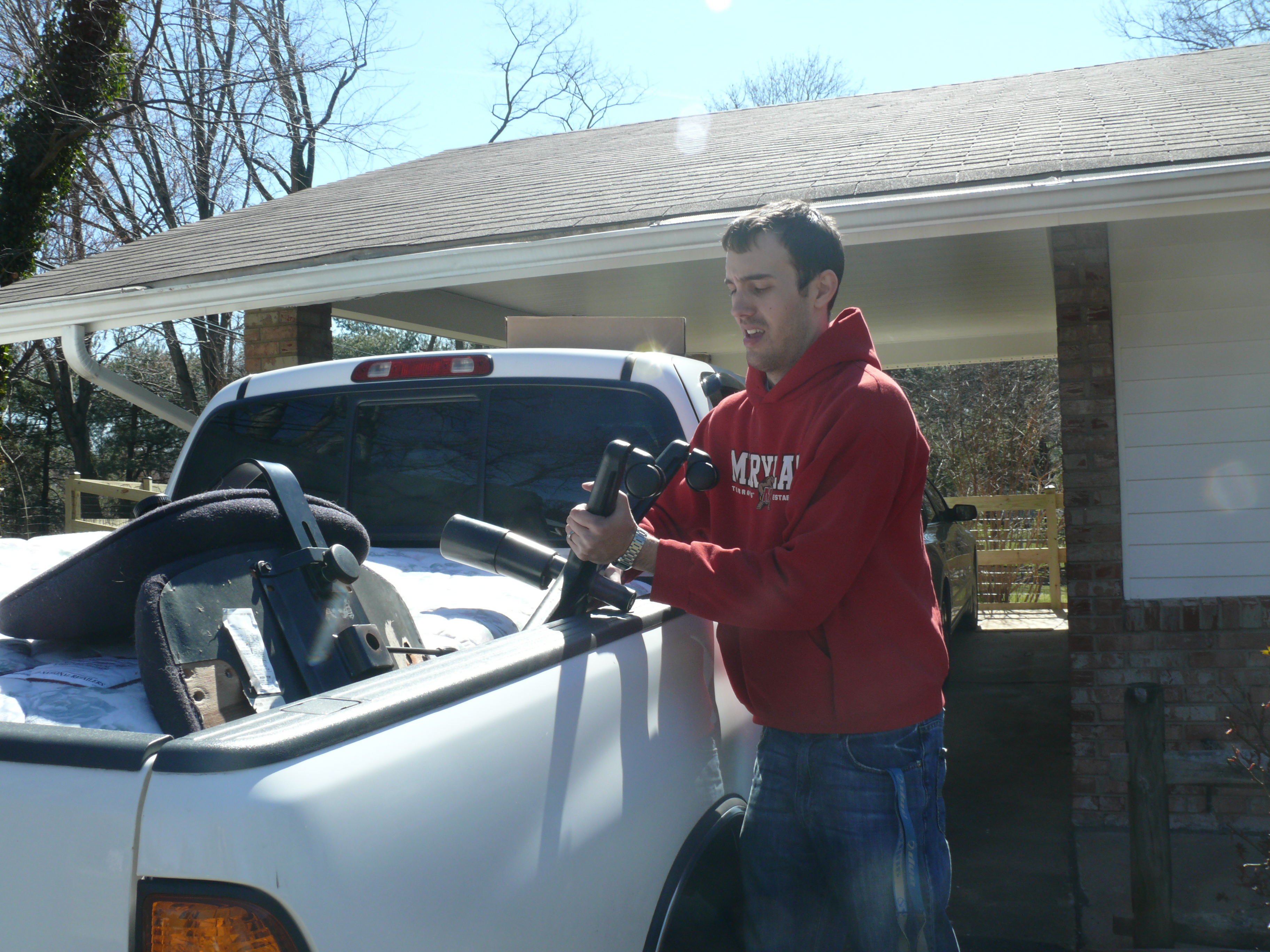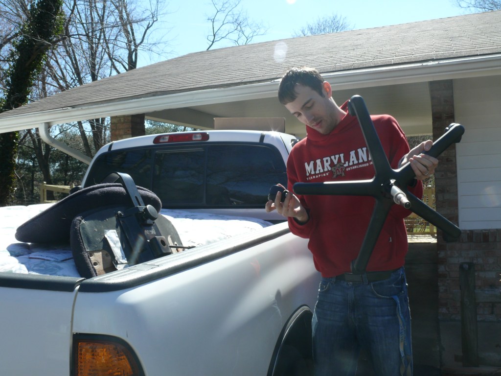The best part of the story is that we obviously couldn’t continue driving with the mattresses in the bed of the truck the way they were before, so we had to leave the hubby’s desk on the side of the road. This is particularly funny because the desk is rather girly (it used to be Brian’s mom’s desk — he’ll kill me for telling you that) and should never have been used by a 12-year-old boy, let alone a 26-year-old man. We need new desks haha. So with the desk on the side of the road, the mattresses in the bed of the truck (flat this time), and the hubby’s desk chair wedged on top to keep the mattresses from flying out again, we continued our trek.