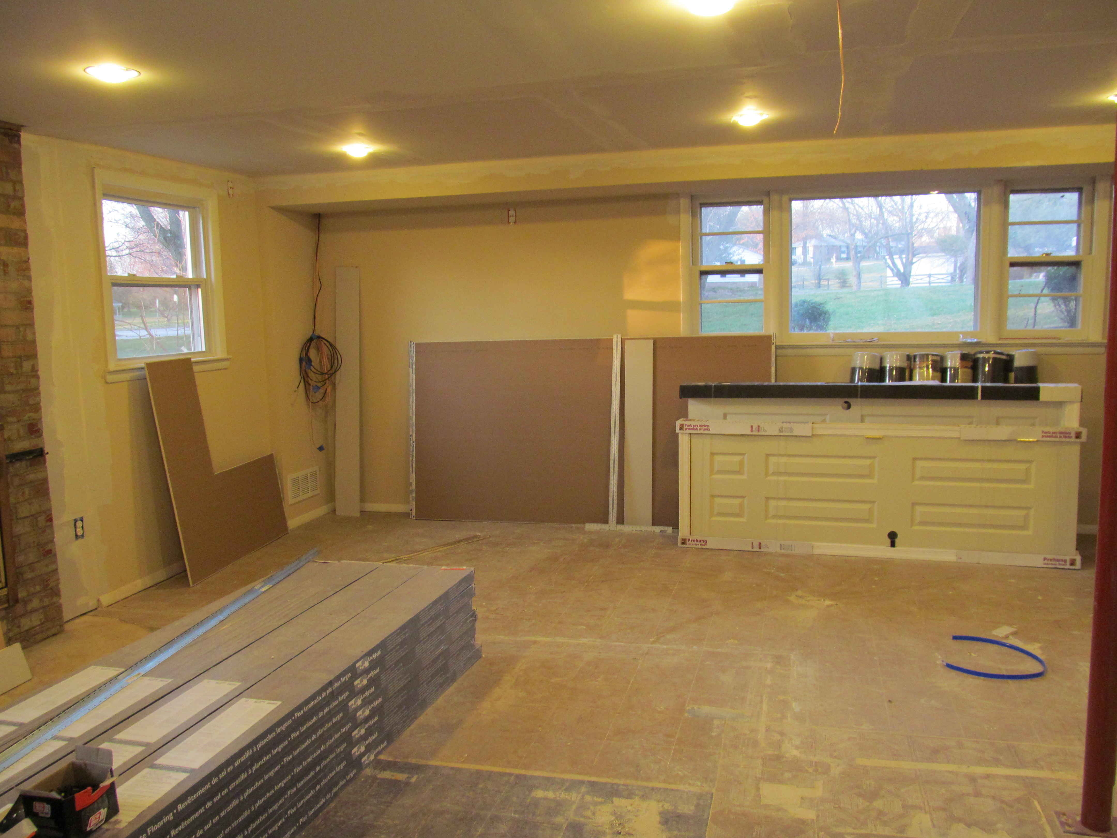 It looks fantastic. I’m getting really excited to see the final product. Oh! And look at the lighting! I forgot I hadn’t posted pictures yet. The recessed lighting is wonderful. It makes a huge difference. We had it installed in the kitchen and craft room, too!