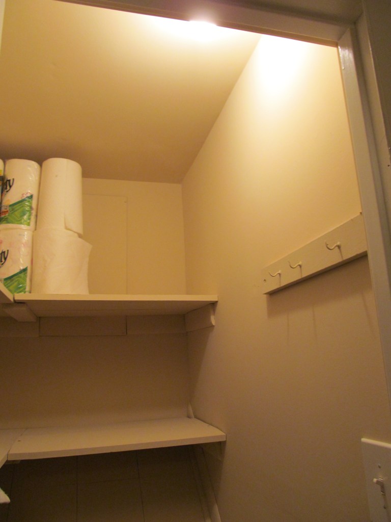 We now have a light in our linen closet. It might not sound exciting, but it’s very exciting for us.