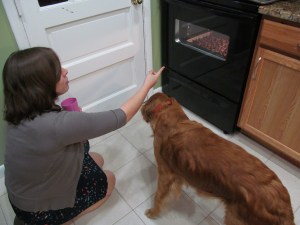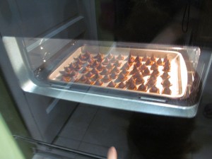 - Once all of your pretzels are covered, pop your baking sheet into the oven for about 5 minutes. (We watched ours pretty closely and tried to get Remmy to partake. He wasn’t so interested.)