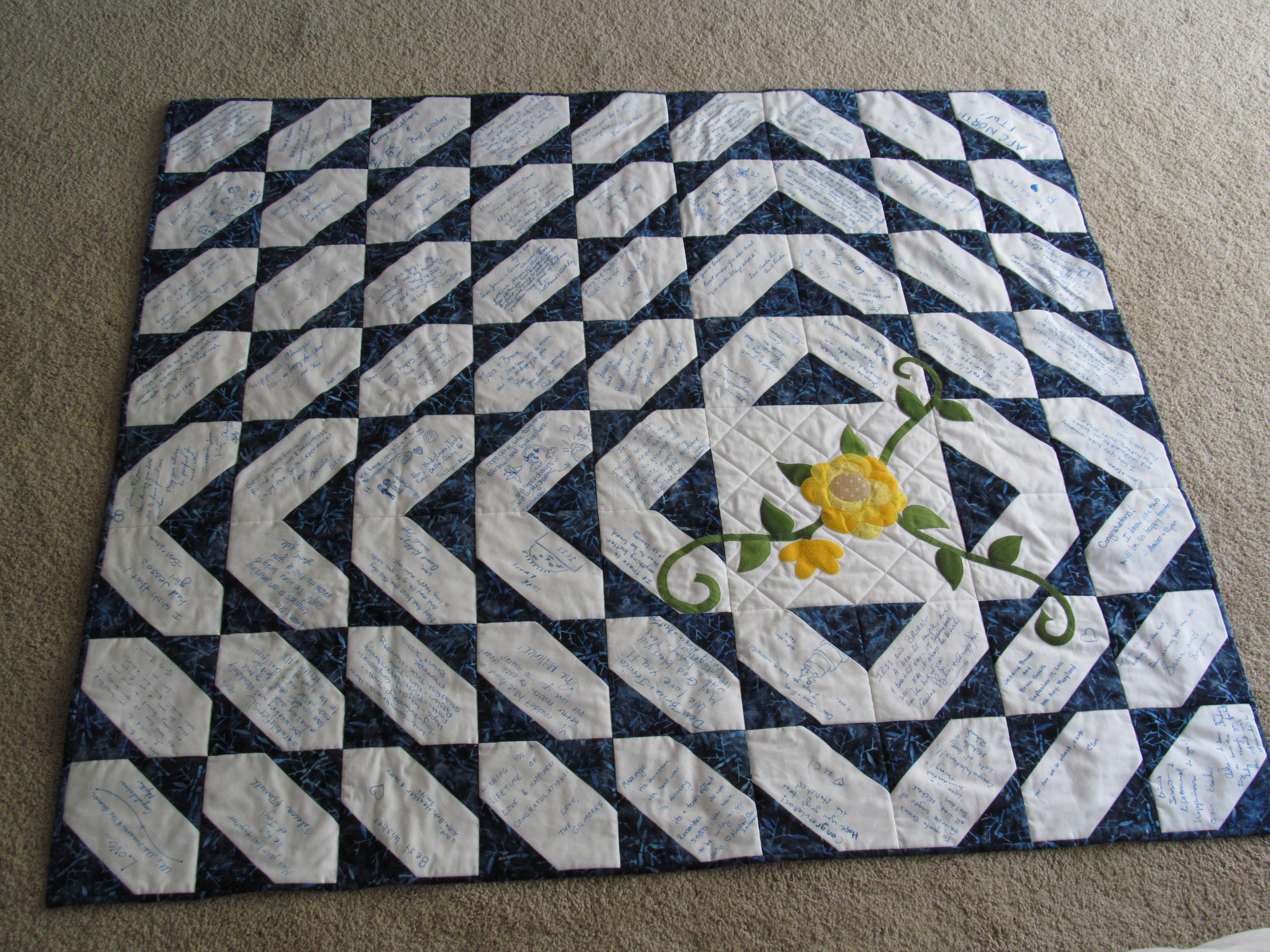 Hi there. I would like to make a guest book quilt and wanted to know how to do it? What did people sign? Did u make the blocks or just the white strips and piece it later? Any special treatment of the fabric to help with signing the fabric? Any advice would be appreciated! Thx. Lovely quilt.