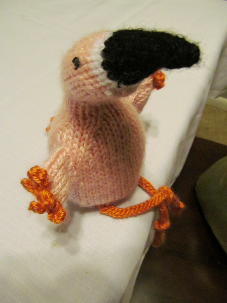 I can’t knit to save my life, so I had no hope of completing this task. I also had no expectation that anyone would actually make me this flamingo.