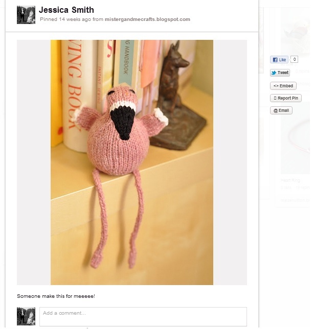I have a thing for flamingos. Besides golden retrievers (and dogs in general), they are my favorite animal. Really I just love birds, but flamingos in particular are pretty awesome. A few months ago I pinned the cutest knitted flamingo with the note/caption “Someone make this for meeeee.”