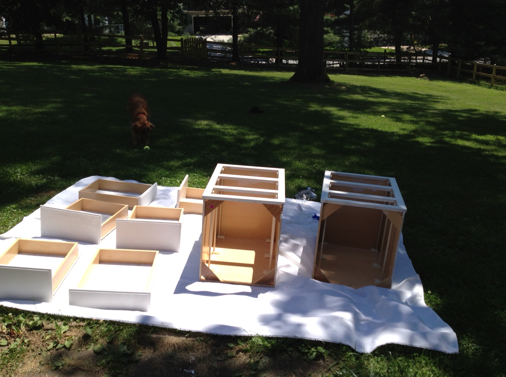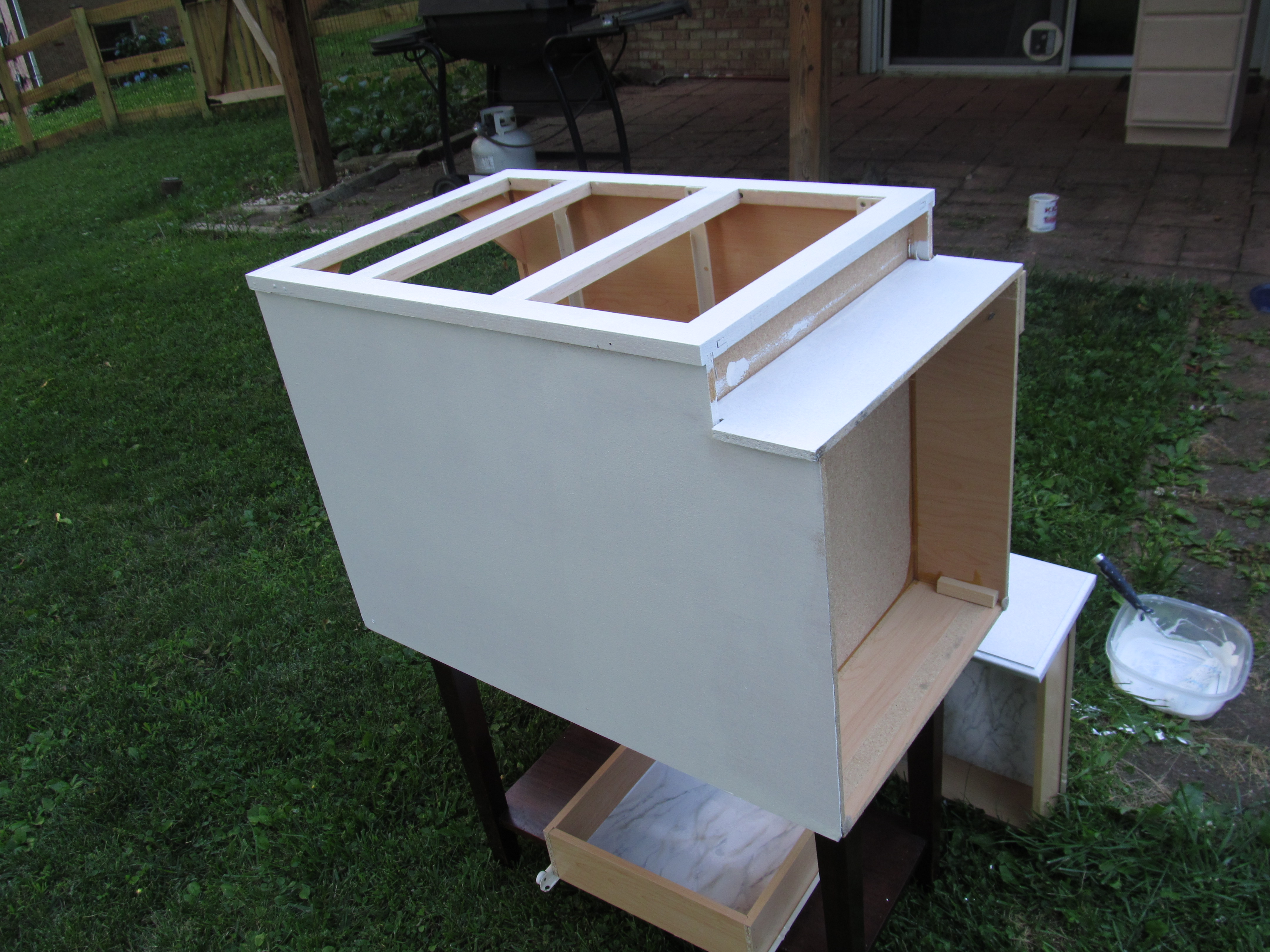 Once the cabinets were primed, I painted then with two coats of semi-gloss white paint.