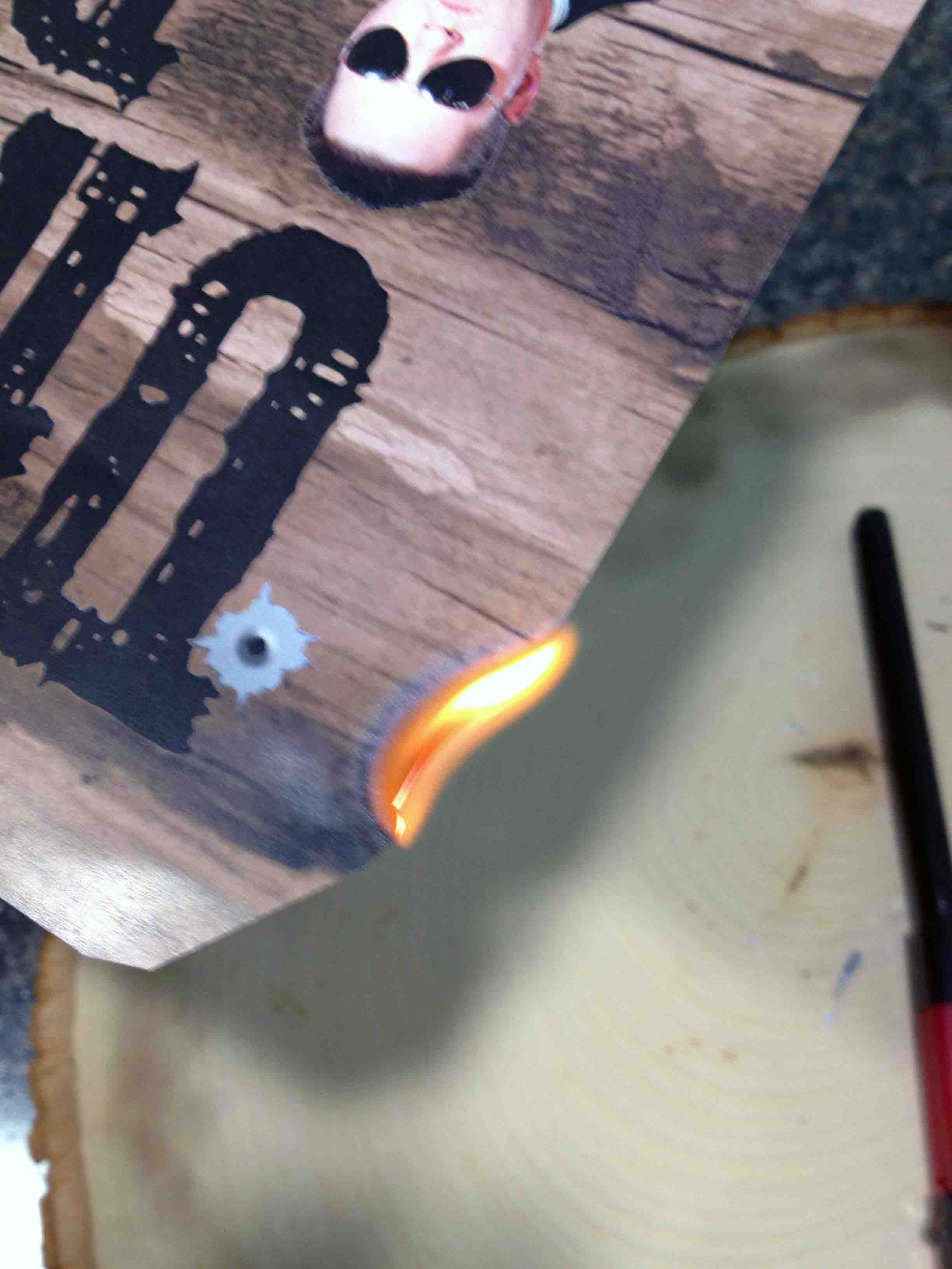 Once the piece of wood was sufficiently burned, I turned the flame to the piece of paper.