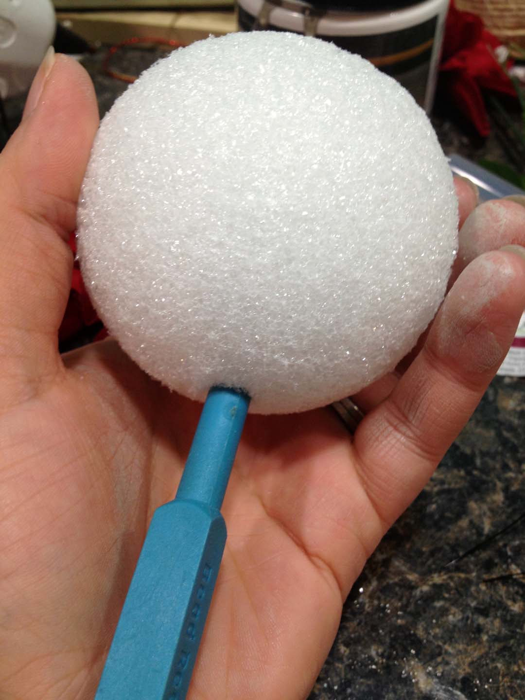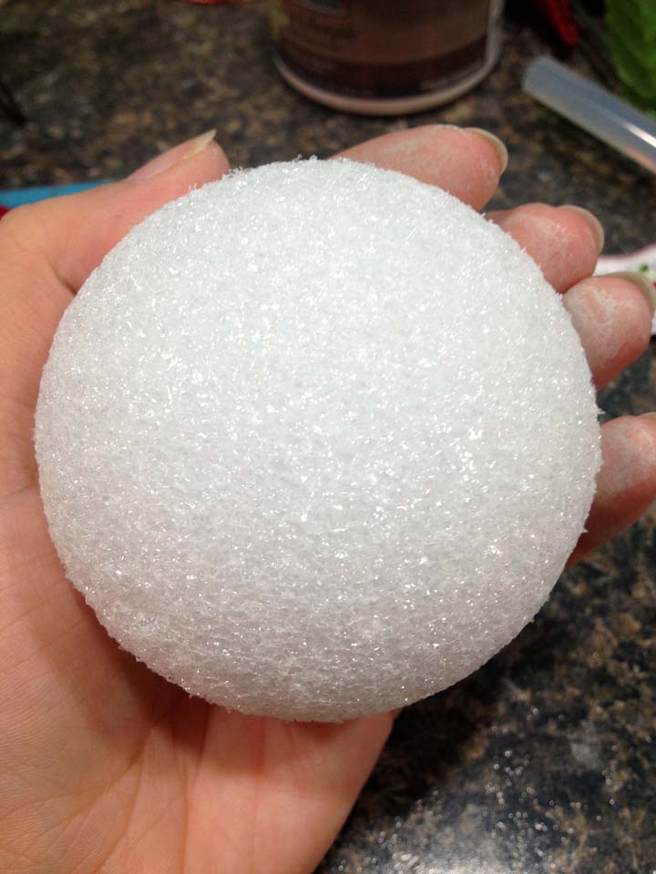 I bought 30 or so styrofoam balls at Granny’s Attic (an indoor yard sale benefiting Dana’s church) in November for only 50 cents! Total score! These things are inexplicably expensive at craft stores, so I was really excited to find such a bargain.