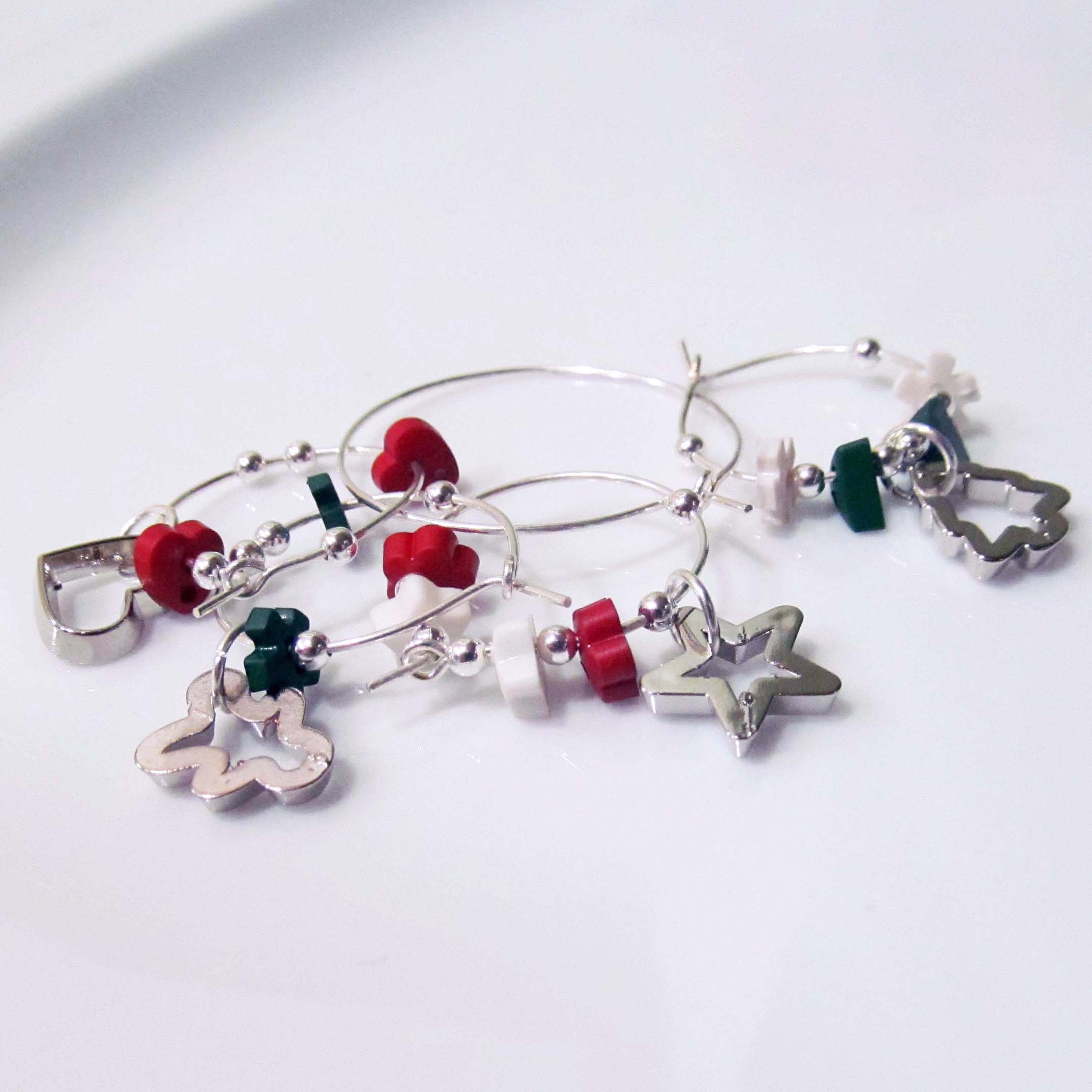 I’ve already shown you how to make wine charms, but did you ever think to make holiday-themed wine charms as inexpensive Christmas gifts? I hadn’t until this year, but as I was wandering the aisles of Michaels I Stumbled across holiday buttons and picked up a pack of holiday lights and cookie cutter buttons. Holy cuteness.