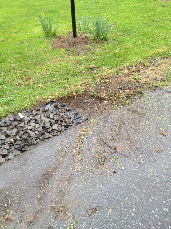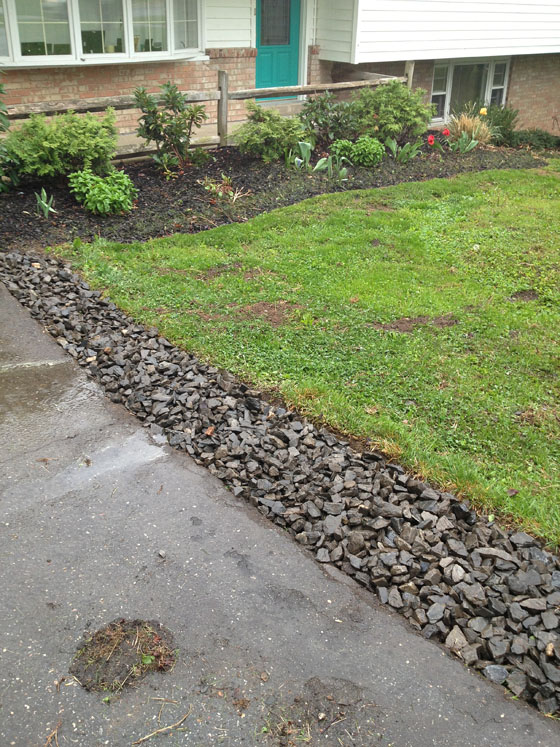 We only got about 16 feet completed, and have another 25 or so to do — thank goodness there is only about 3 feet of rocks on the other side of the driveway!