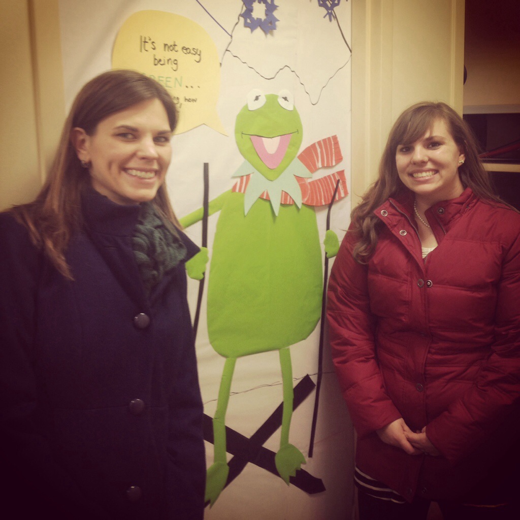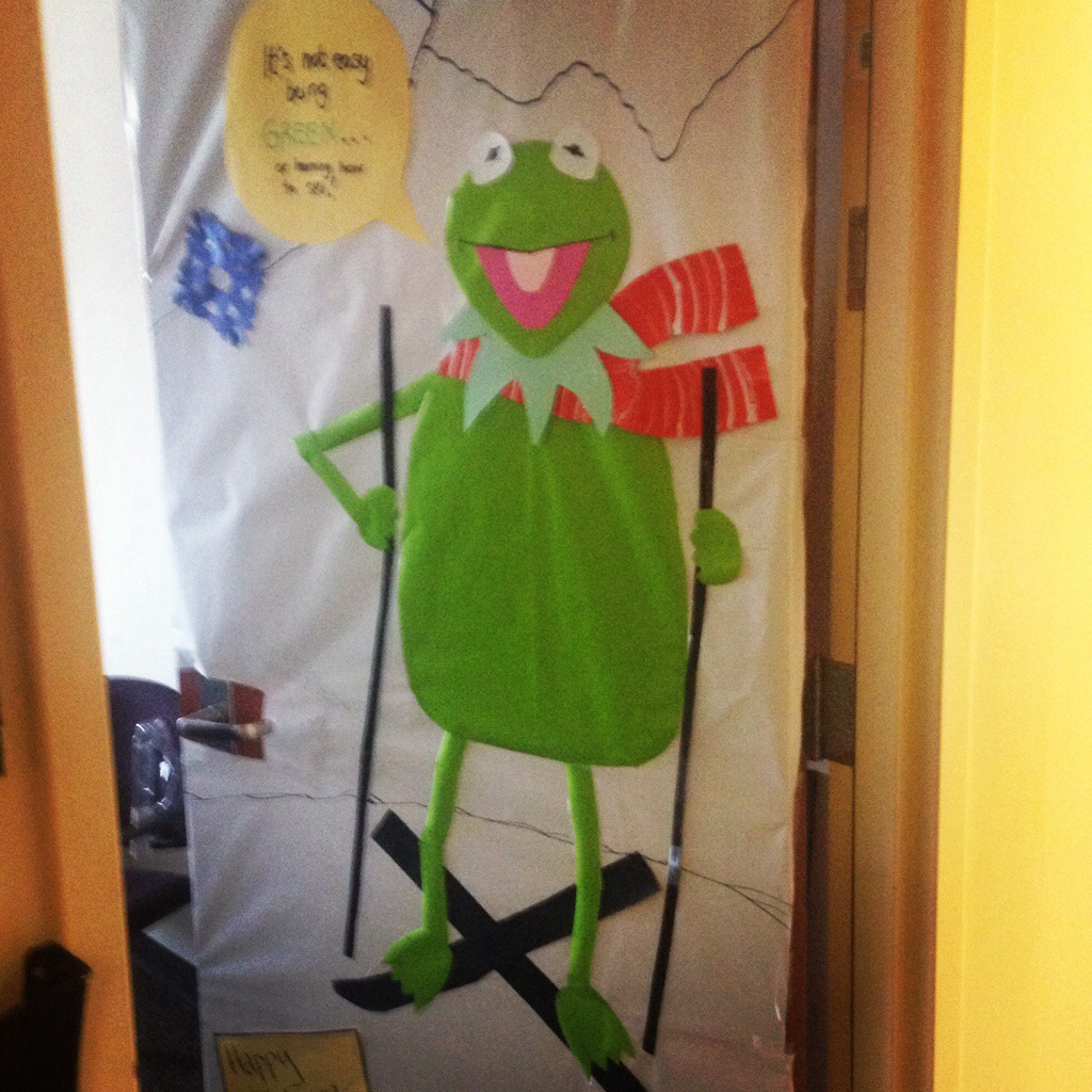 Every year at work we have a door decorating contest at work and this year my officemate Carrie and I took home third place ! Woo!! Check out our Kermit the Frog skiing 🙂