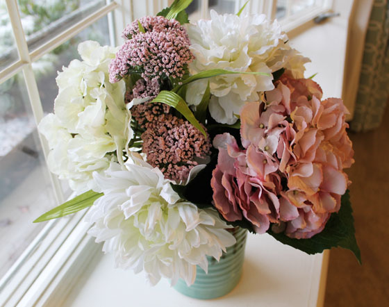 Even though I love to garden outside, I am not very good at keeping things alive inside. These fake flowers are a great way to bring the feeling of the outdoors inside without having to remember to water them!
