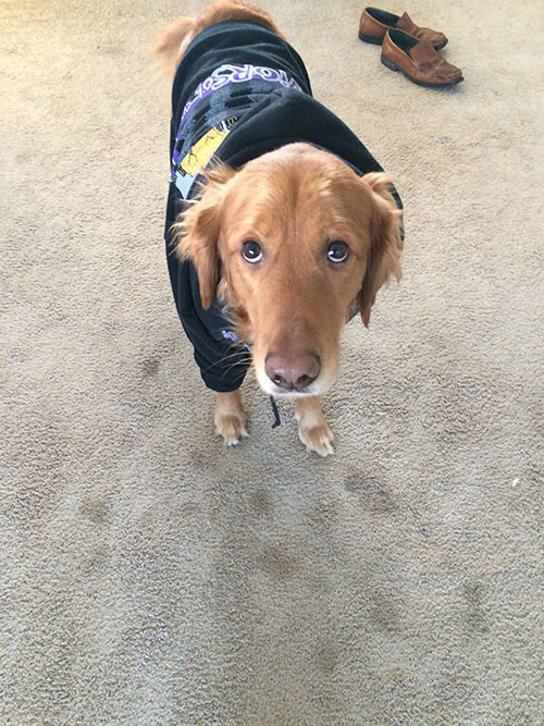 In other news, Brian was concerned Remmy was cold since it is all of 9 degrees in Maryland. So I gave Remmy and old hoodie, which was simultaneously the most adorable and hilarious thing ever.