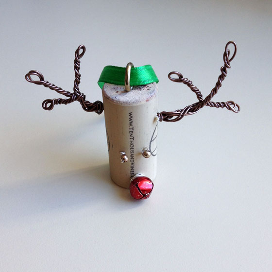 The final step is to add a ribbon! Voila! Rudolph the Red-Nosed Wine Cork!