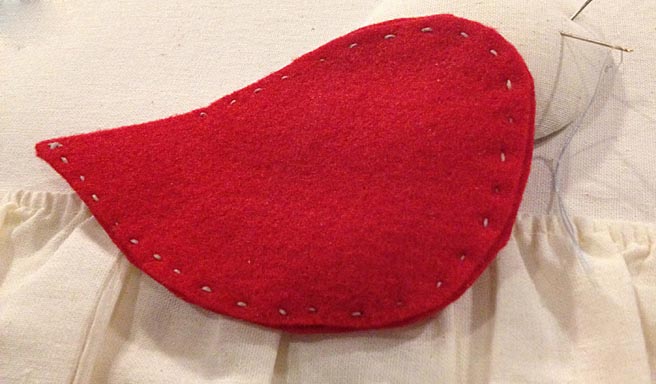 Time to add the rest of the pieces! I cut out a beak, wing and feet, and sewed each piece to the bird.