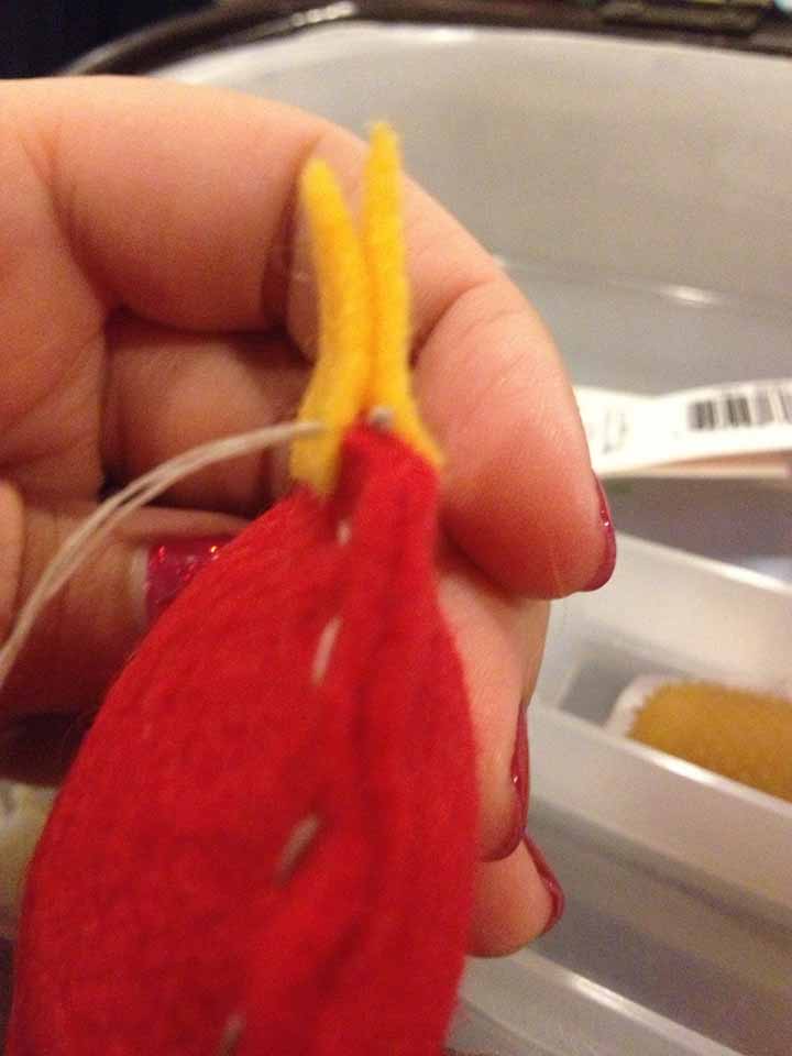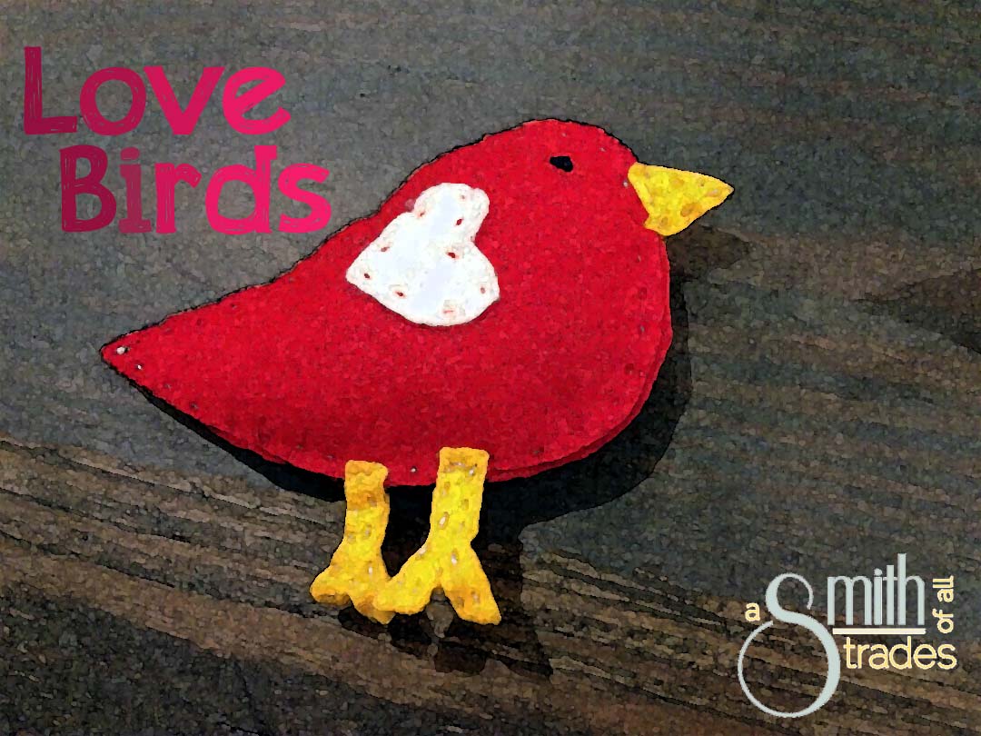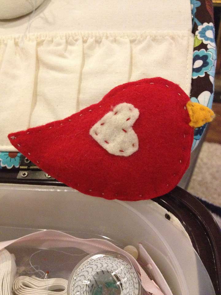 The red bird is for my hubby. Then I made a white one for me! For the second bird, I sewed all of the extra pieces on first. … the beak, the wing, the feet and the eye. That was a lot easier.