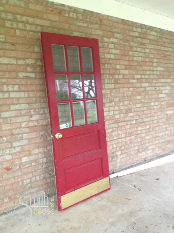 We decided to wait until later to add the trim and get started on the front door (which I demoed all by myself while the boys finished up the car port door!). That was a good choice because that door was also a huge pain in our butts.