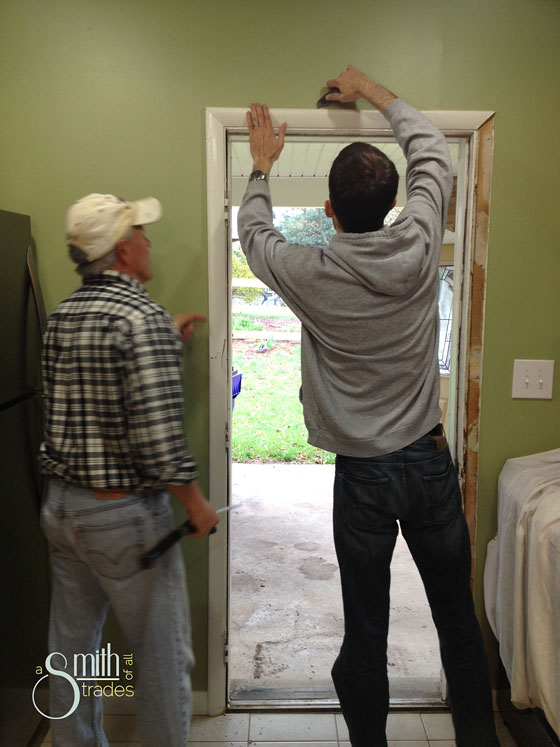 BUT, my step dad is the man. Seriously, he is the man. Not only did he save us like $700 by helping us install these doors, he patiently explained everything he did and let us be a huge part of the whole process. He was amazing. He was/is the man, and he figured out (after much cursing) exactly how to get the front door into our crooked, too-wide opening.