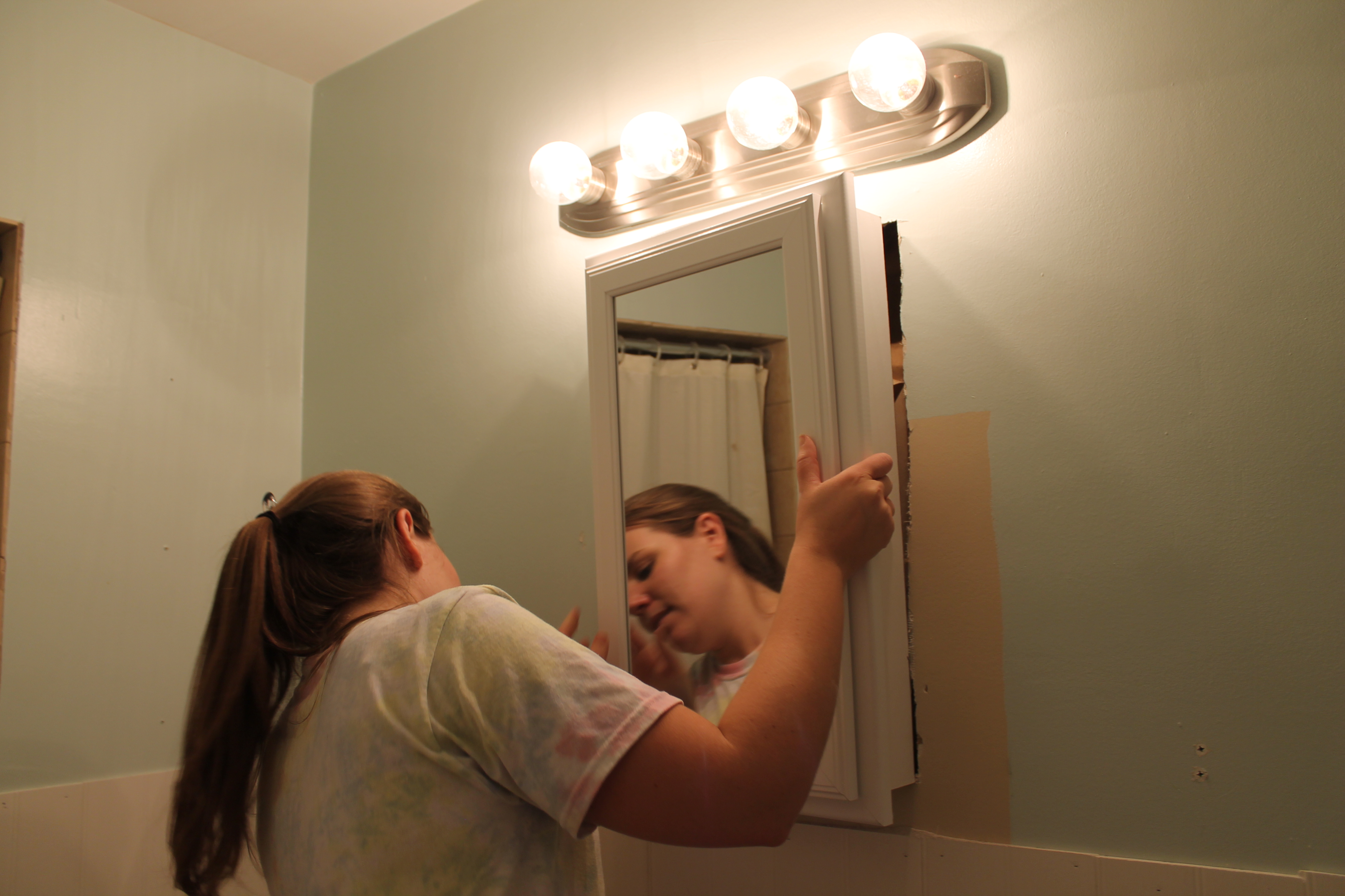 Then, we popped the mirror into the wall — it fit perfectly!