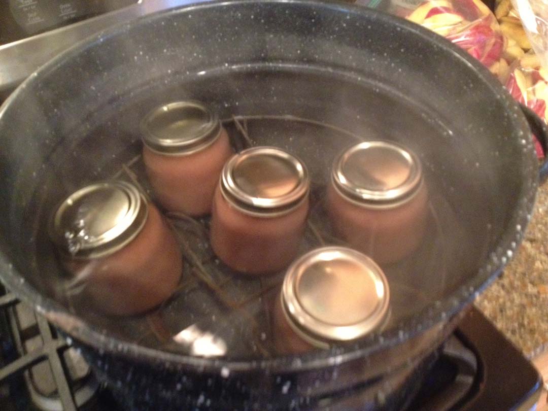 Here’s a few important things to remember. 1. Leave about an inch or so of head room at the top of your jar. Do not fill your jar to the tippy top. 2. Make sure there is no residue on the top or sides of your jar where your lid will seat or it will not seal properly. 3. As you make different batches of applesauce (one or two bowls = batch), write on the lids in permanent marker what type they are so you can tell later on.