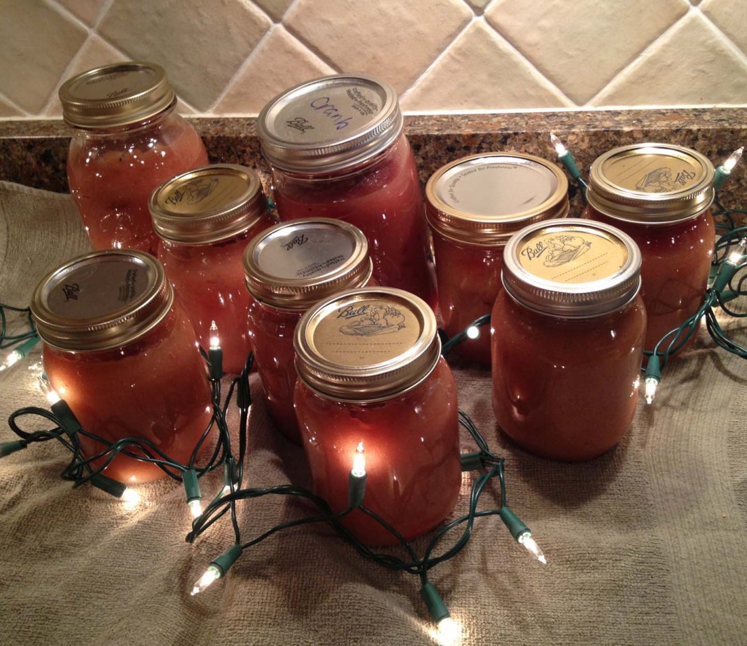 Once your jars are sealed, store them until it is time to gift, gift, gift! Like I said earlier, we made 72 different-sized jars. I took home 27. SWEEEEET.