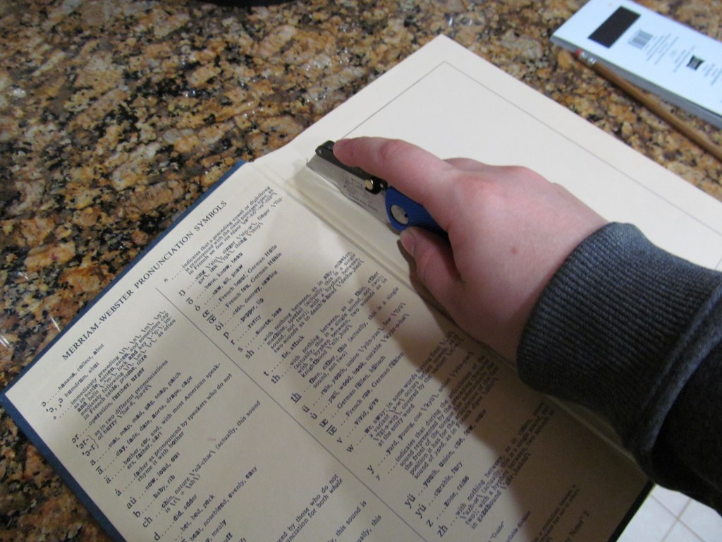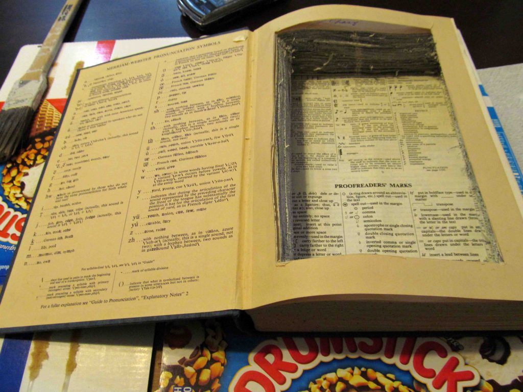 To start this project, I cut up three or four pages from an old dictionary into little pieces of paper. I had no rhyme or reason for the shape of the paper, just random shapes.