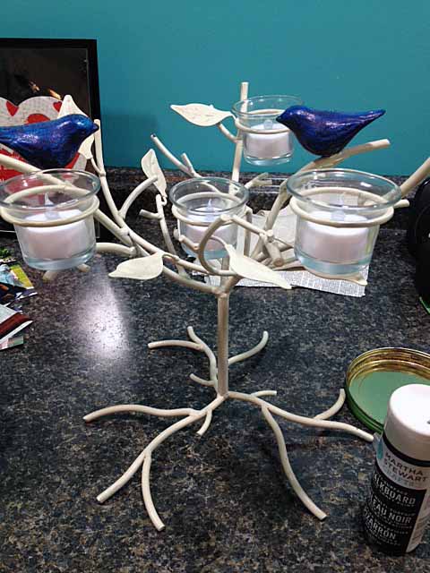 With my pattern taped and ready to paint, I started to apply my paint colors: metallic gold (Thanks, Martha!) and ivory/manilla. I originally was going to do something with bolder pops of color, but went for the metallic paint as my bold choice. I also was going to add a third color, but my pattern only took up so much room and the third color probably wouldn’t have added anything to it.