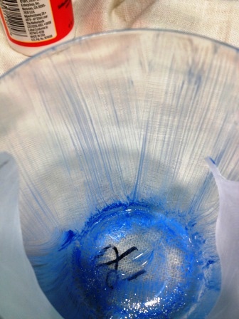 I let this dry, then added a skinny pink ribbon through the middle of the fabric. For the ribbon, I secured it to the glass only with a few dabs or hot glue.