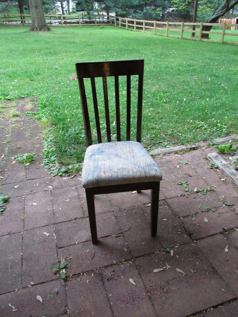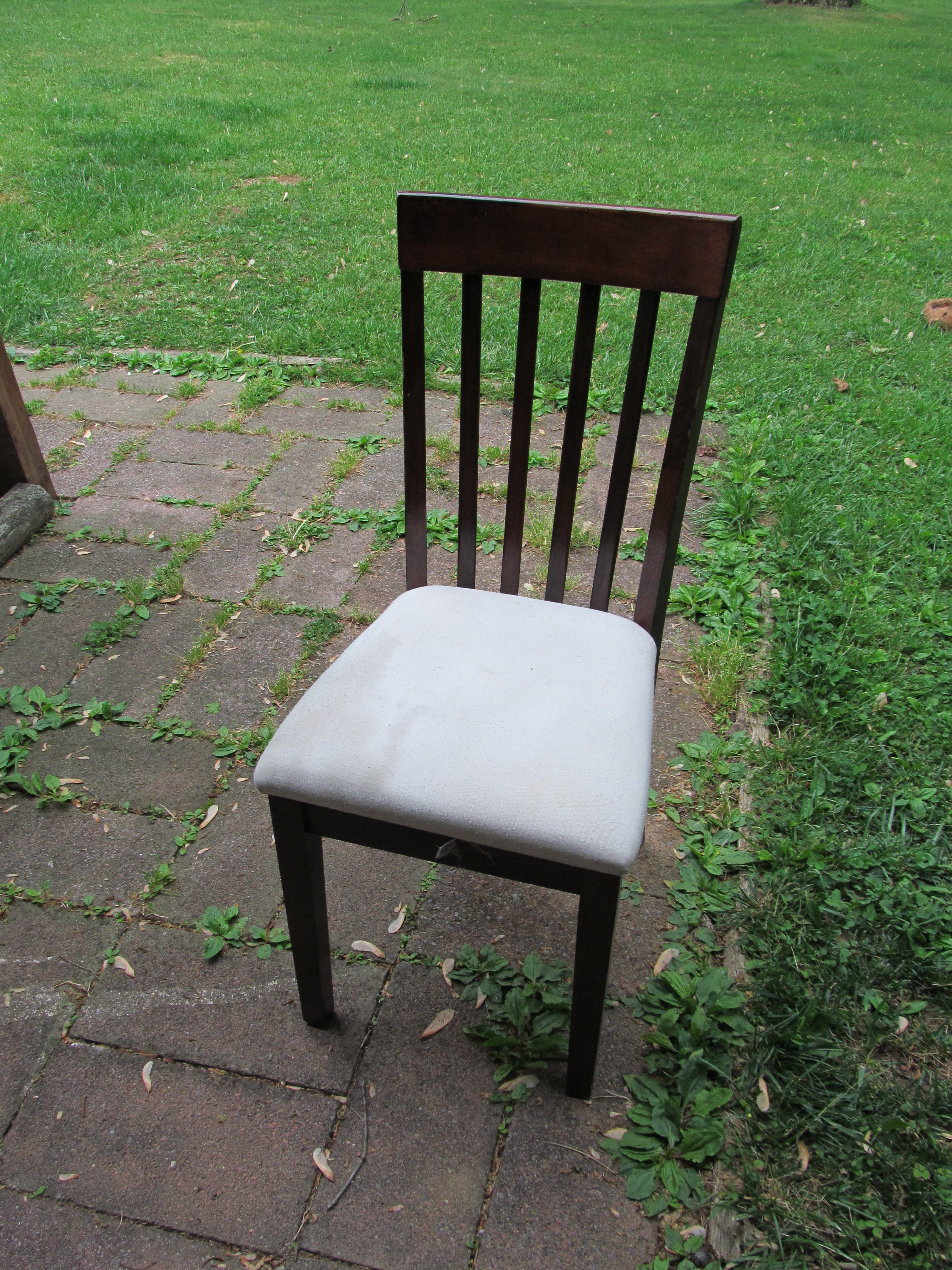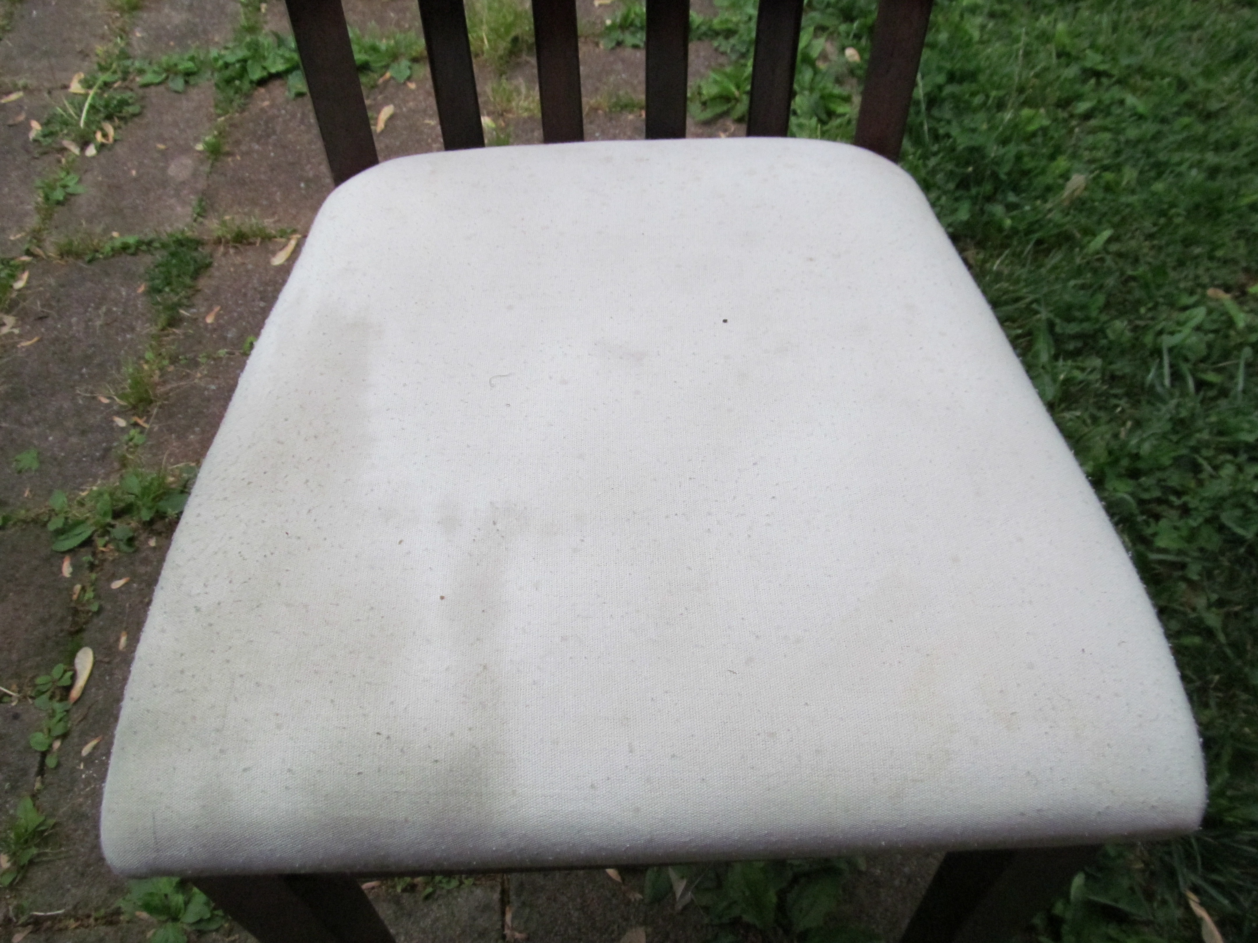 So I quickly got to recovering. The hubby didn’t really want to recover the seats with me, but he helped me unscrew the seats from the stools before leaving me to my project.