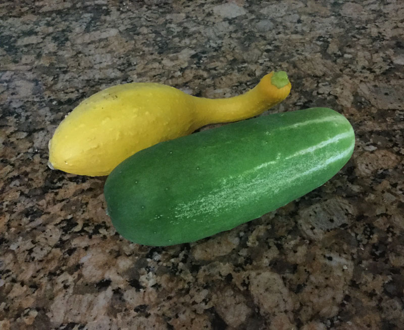 Everything should be turning green/growing like crazy in the next few weeks. I harvested a zucchini, crookneck squash and cucumber already.