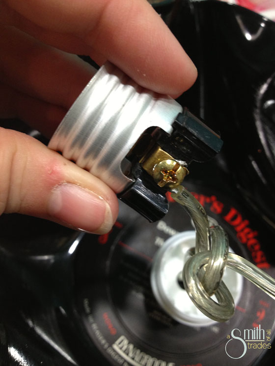 I picked a particularly curvy record bowl for the light, but I needed to get the wire through the h0le in the record so I needed to unwire it.